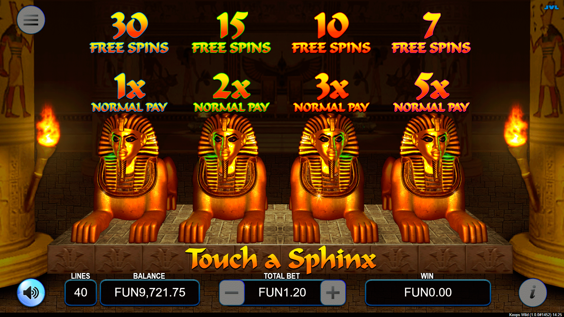 Beneath the burning Egyptian sun, a forgotten guardian awakens. Keops Wild summons players to the realm of pharaohs and secrets, where the ancient SPHINX spreads wilds with every touch. The mighty Pyramids unlock a customizable free spins journey — more spins with lower stakes or fewer spins at godlike multipliers.