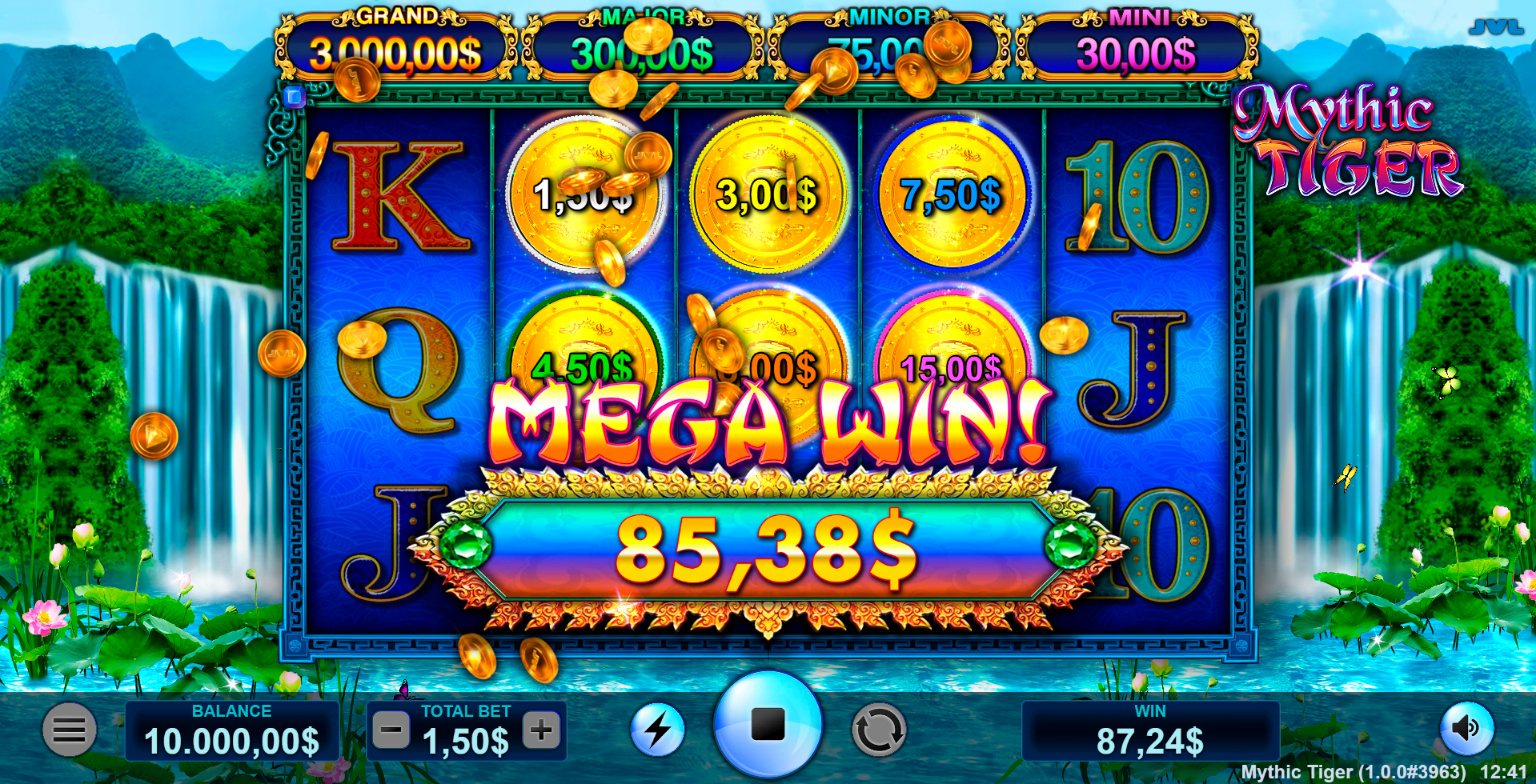 In the mists of ancient Asia, a white tiger prowls — silent, sacred, and awe-inspiring. Mythic Tiger draws on the symbolism of this elusive creature, believed to guard the West and rule with both grace and might. As it leaps across the reels, it transforms with a roar, filling entire reels and calling forth coin-laden bonus rounds.