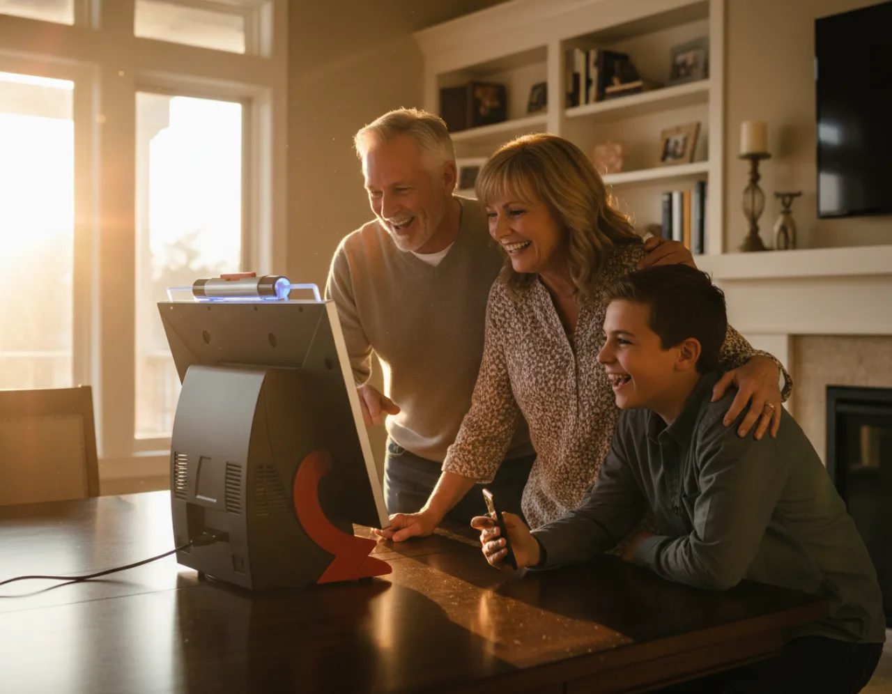 Mark & Linda Reynolds positioned theirs between their whiskey collection and vintage barware. "It bridges generations," Linda explains. "Our grandkids understand it instantly. Our friends from the '80s get nostalgic. Everyone feels like they belong."